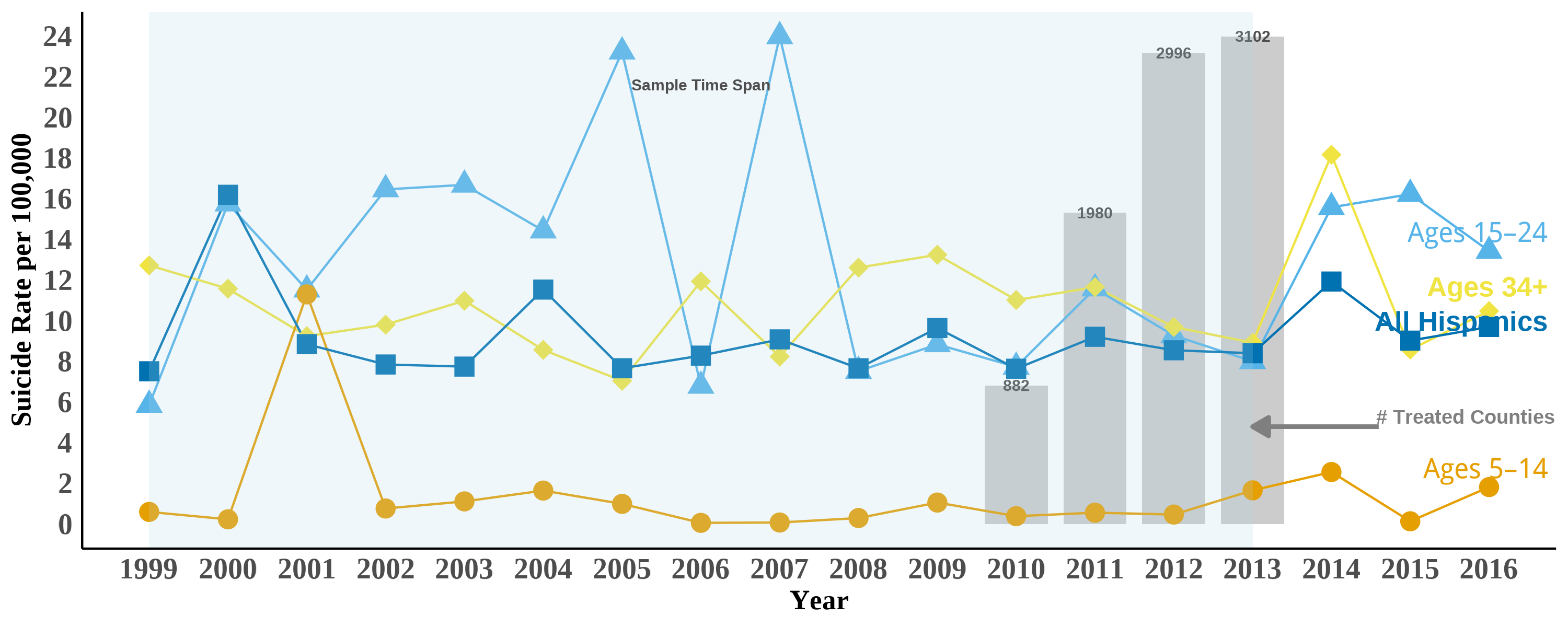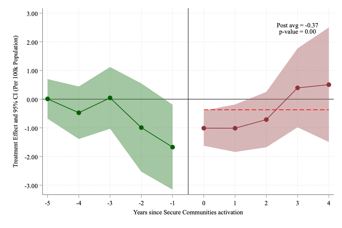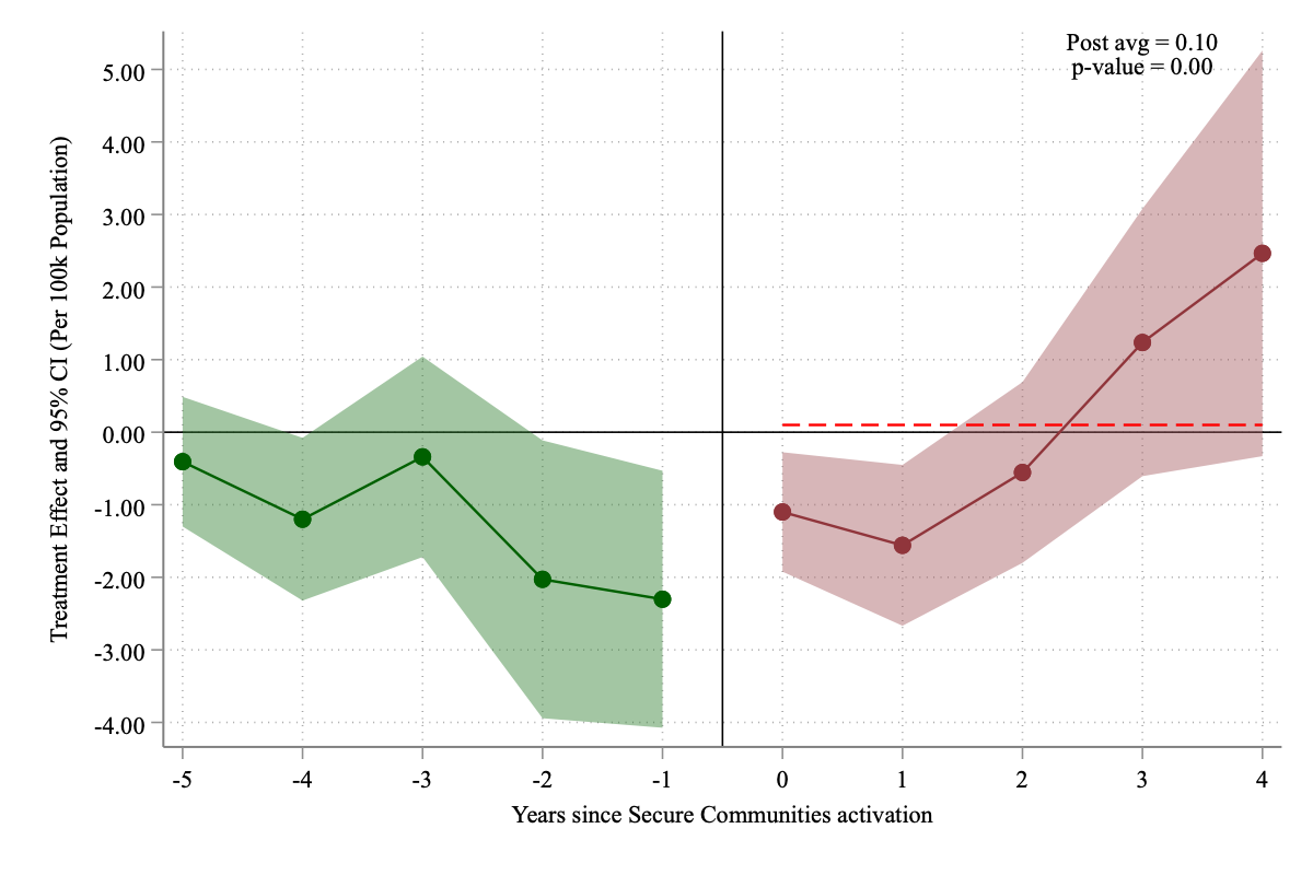 I estimate the causal impact of the US Secure Communities (SC) program—which greatly expanded deportation risk nationwide—on suicide rates among Hispanic populations. Exploiting SC’s staggered county-level rollout between 2008 and 2013, I use the triple difference-in-differences (DDD) estimator proposed by Borusyak, Jaravel, and Spiess (2024) to identify causal effects. The DDD comparisons between Hispanic and non-Hispanic Whites reveal striking heterogeneity across age groups: Hispanic children aged 5-14 experience decreases of 0.35-1 suicides per 100,000 (35-100% relative decreases), and adolescents aged 15-24 show reductions of 2.2 suicides per 100,000, while Hispanic adults aged 34+ suffer increases of 0.5-2.6 suicides per 100,000 in years 2-4 post-implementation. Local contexts significantly moderate these effects: counties with stronger economic conditions show more protective effects, while Democratic-leaning counties experience larger increases in adult suicide rates. Sanctuary counties provide enhanced protection for youth (reductions of 4.25 vs 0.76 suicides per 100,000 for children) but simultaneously show greater adverse effects for adults (increases of 4.93 vs 2.32 suicides per 100,000) compared to non-sanctuary counties. Because Hispanic ethnicity is often underreported in mortality data, these estimates likely understate the true effects. Overall, the evidence suggests that immigration enforcement produces complex mental health impacts fundamentally shaped by age, gender, and local economic and political environments.