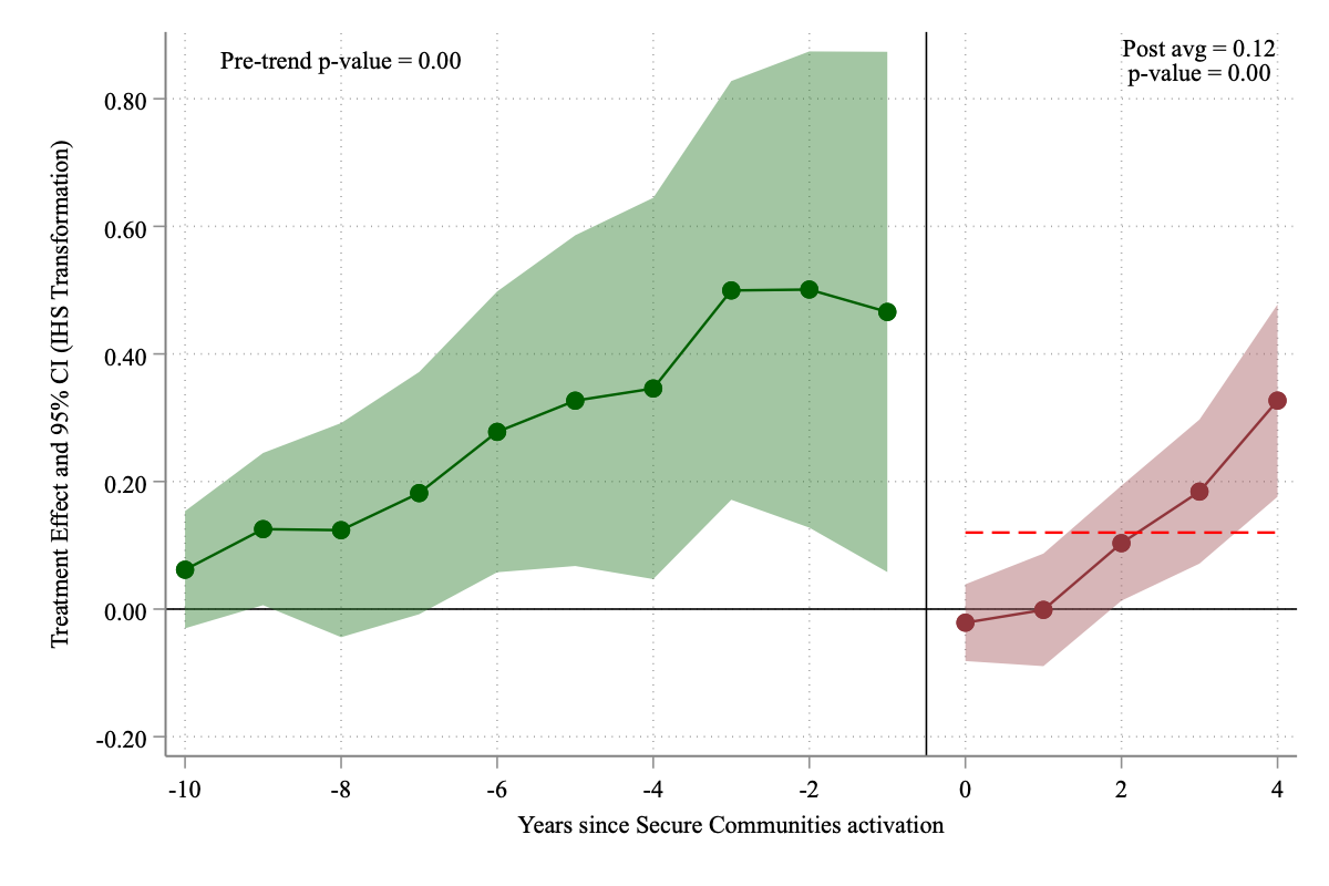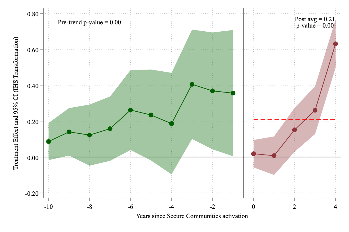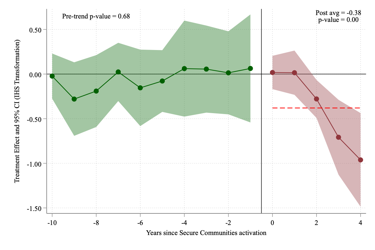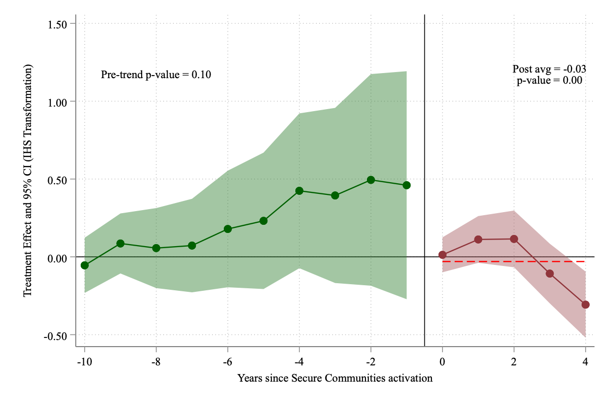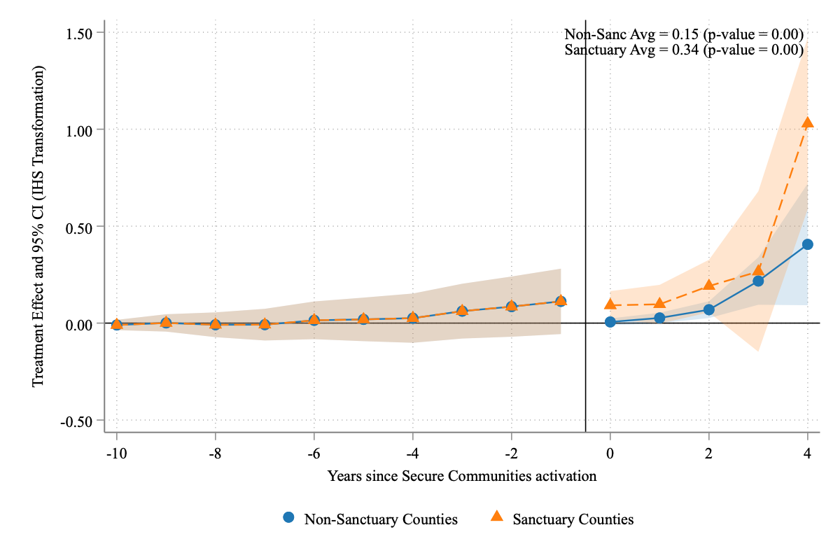 I estimate the causal effect of the US Secure Communities (SC)—a nationwide immigration enforcement program that greatly expanded deportation risk—on suicide rates among Hispanic populations. Using the program’s staggered county-level roll-out from 2008 to 2013, I use the Borusyak, Jaravel, and Spiess (2024) method to identify causal impacts. The results reveal heterogeneous effects across age groups: SC led to a 6% increase in suicide rates among Hispanic children aged 5-14, but an 18% decrease among Hispanic youth aged 15-24, and a 10% increase among Hispanic adults aged 34 and older (equivalent to approximately 300 additional deaths annually for this group). Triple difference-in-differences analysis comparing Hispanic to non-Hispanic White populations shows that Hispanic children and adolescents experienced significant decreases in suicide rates relative to their White counterparts, while Hispanic adults showed increases of up to 60% relative to Whites. Due to likely underreporting of Hispanic ethnicity in vital statistics, my results probably underestimate the true influence of immigration enforcement on mental health outcomes. The analysis reveals significant variations depending on local policy contexts: sanctuary counties generally showed stronger protective effects for younger Hispanic populations but similar or greater adverse effects for older adults compared to non-sanctuary counties. The results reveal that aggressive immigration enforcement has complex, age-specific impacts on mental health, with particularly concerning effects on older Hispanic adults.